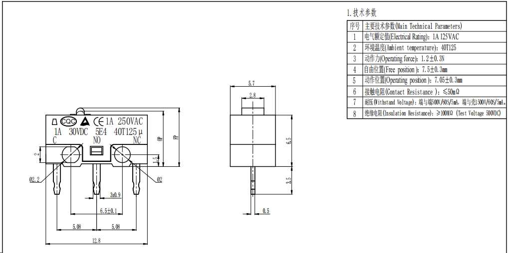 Dzięki opatentowanemu mechanizmowi szybkiego spustu o działaniu migowym czas reakcji spustu wynosi ≤8 ms, co poprawia wydajność o 25% w porównaniu z tradycyjnymi mikroprzełącznikami. Skok spustu jest precyzyjnie kontrolowany w zakresie 0,3–1,0 mm, a zakres siły roboczej wynosi 1,5–4 N. Reakcja na naciśnięcie jest wyraźna i wyraźna, bez zacinania się i luzu, co pozwala na precyzyjną kontrolę „lekkiego dotyku, aby połączyć, puścić, aby przerwać”, doskonale sprawdzającego się w scenariuszach wymagających dużej czułości spustu. Styki wykonane są ze stopu srebra i cyny o wysokiej czystości i poddane precyzyjnemu zgrzewaniu punktowemu, przy początkowej rezystancji styku ≤30mΩ. Obciążenie znamionowe obsługuje napięcie 1A/250 V AC i 3 A/125 V AC, skutecznie zapobiegając nagrzewaniu lub spalaniu styków podczas przepływu prądu.