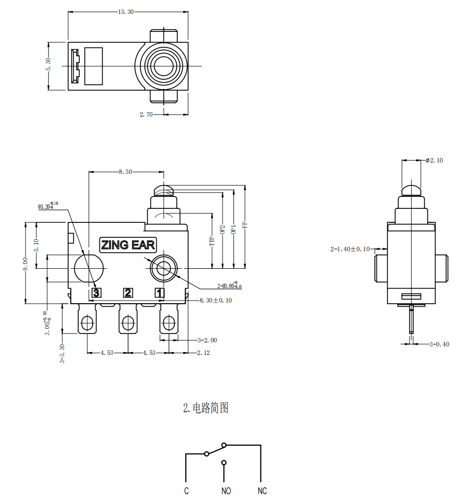 Wodoodporna mikro przełącznik Ultra Compact ma niewielki przedział kontaktowy i mechanizm szybkiego działania, a mechanizm kontaktowy do przełączania z określonym skokiem i siłą jest pokryty skorupą, a na zewnątrz jest transmisja, a kształt jest mały.