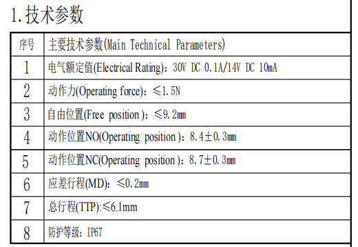 | 1 | Ocena elektryczna | 10MA 14 V DC/0,1A 30VDC | |