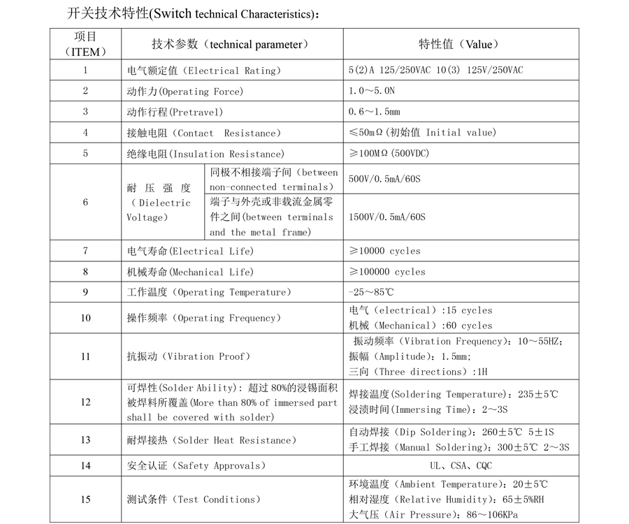 | 4 | Opór kontaktowy | ≤50mΩ Wartość początkowa | |