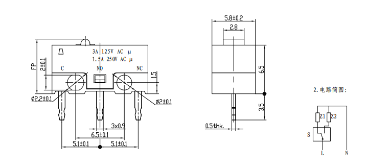 | 1 | Parametry elektryczne: 1A/3A 250VAC |
